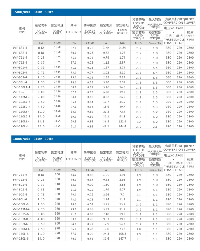 名稱:YVF系列鋁殼變頻調(diào)速三相異步電動機
